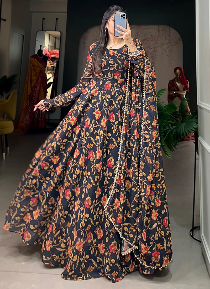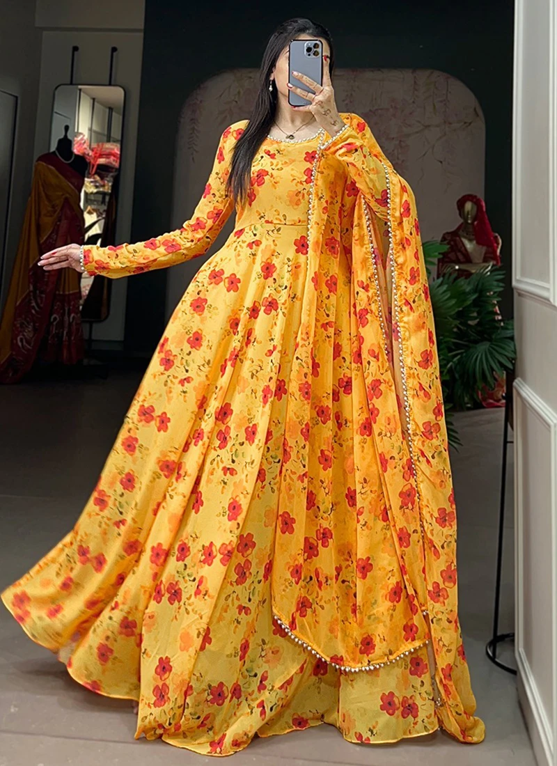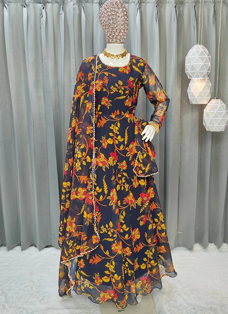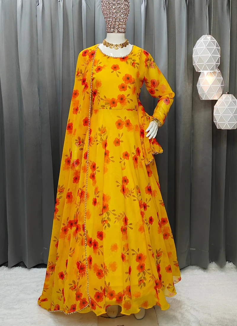 Add these stylish georgette readymade gowns with dupattas to your collection and step out in confidence at every event!